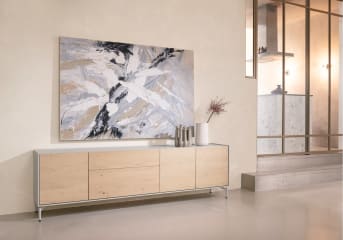 Le buffet NIORA est immense, il affiche une apparence naturelle et des lignes épurées. Cet accroche-regard pour votre intérieur mesure pas moins de 240 cm ! En outre, il est équipé de 3 portes et de 2 tiroirs. NIORA est en MDF laqué et les portes sont fabriquées en chêne plaqué naturel pour un look paisible. Les pieds en métal arborent une finition ton sur ton de couleur silk grey. Cette touche apporte un brin de modernité au buffet NIORA. Les portes et les tiroirs sont dotés du système de fermeture softclose. Existe également comme lowboard, dressette ou armoire.